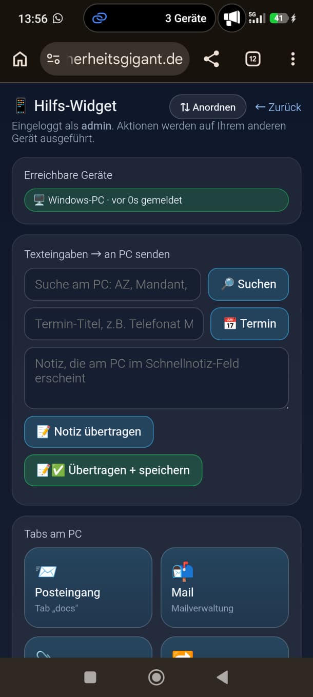 Ich Wette da fallen auch jeden Mandanten die Augen raus 😁 Ja was soll ich machen, war eigentlich alles fertig und trotzdem gehe ich einen Schritt weiter als anderen je eingefallen wäre und bringe das Handy noch mehr mit ins System und spare damit merkbar Zeit und denke das kann man so machen.